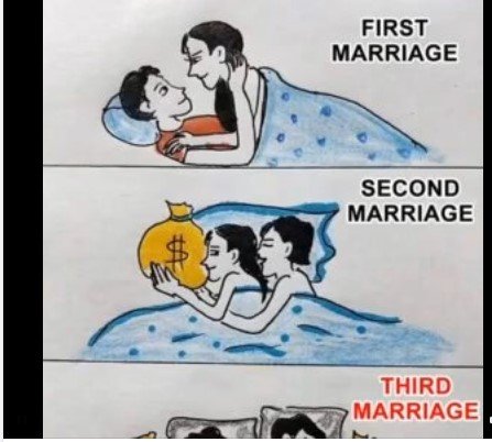 Divorce rates increase with each marriage: first marriages have a 40-50% divorce rate, second marriages around 60%, and third marriages about 73%,Other factors include a