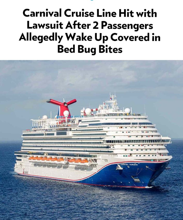 Two Carnival Cruise Line passengers are suing the company claiming they woke up covered in bed bug bites during a sailing earlier this year. According
