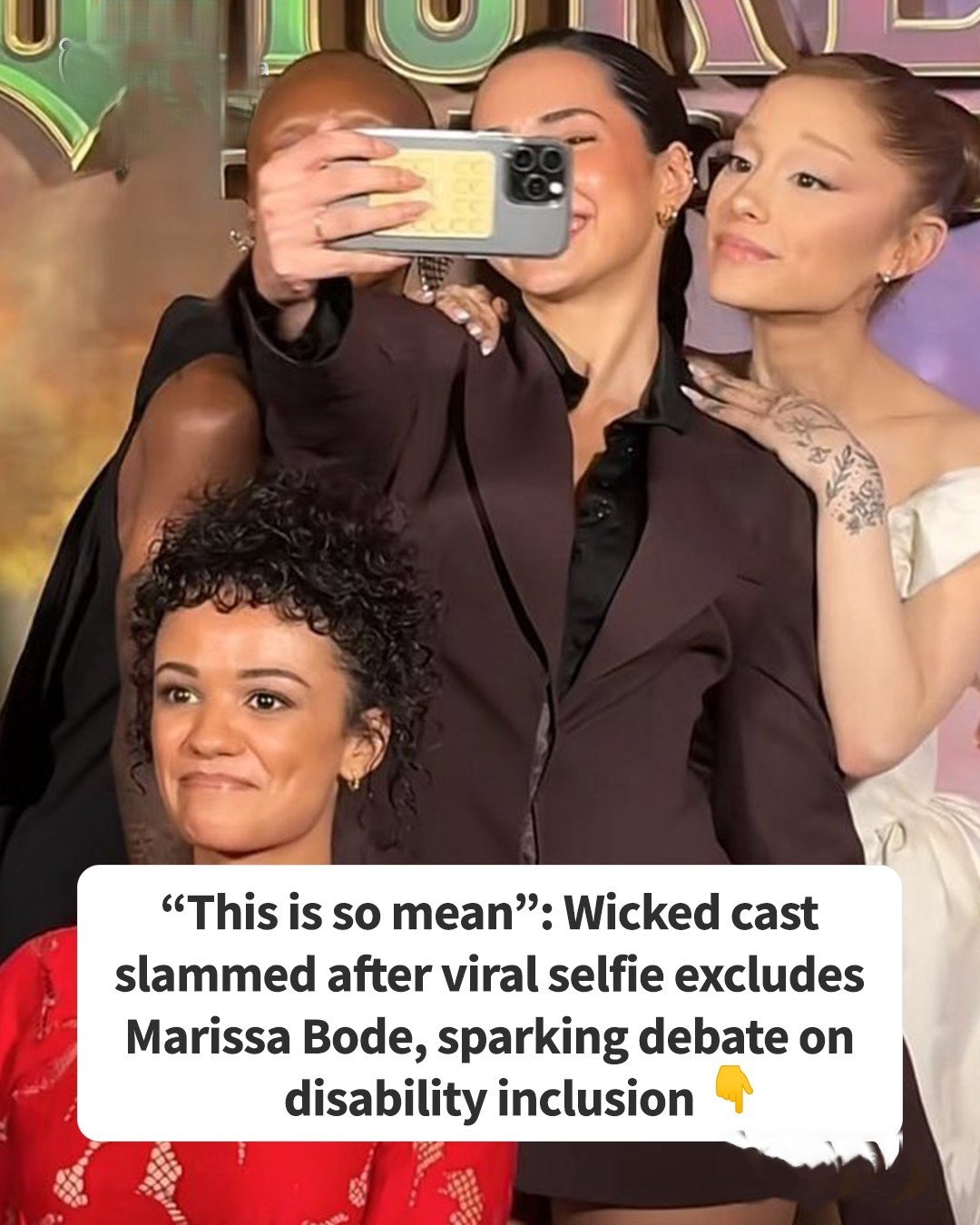 Marissa Bode, the actress playing Nessarose in Wicked: For Good, became the center of an uncomfortable controversy after a selfie taken during the film’s London premiere on November