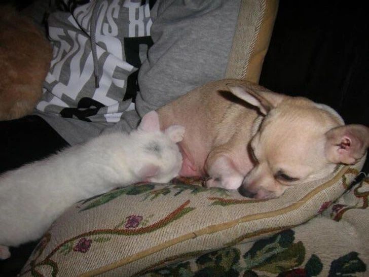 17. “My dog started producing milk for a motherless kitten I adopted.”