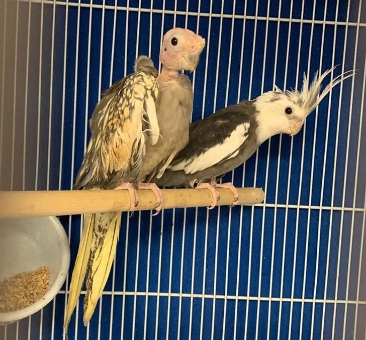 2. Female parrot lost her feathers but the male parrot fell in love with her.