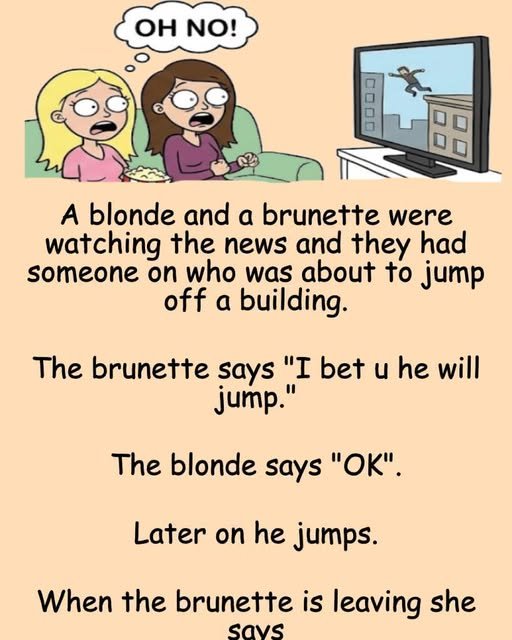 A blonde and a brunette were watching the news and they had someone on who was about to jump off a building.