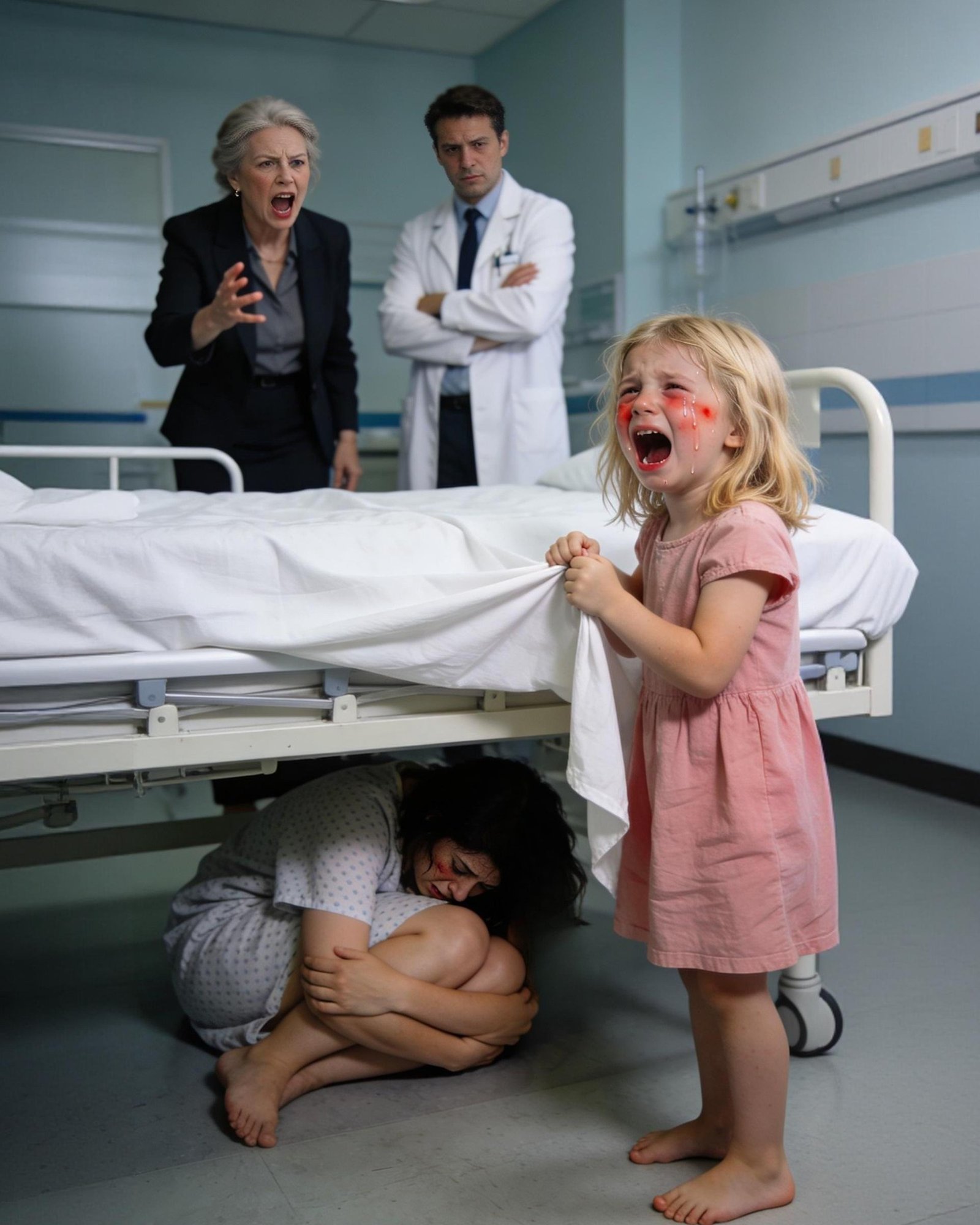 “Dad,” she said, her voice shaking but loud, “Mom is under here because Grandma is trying to hurt her.”