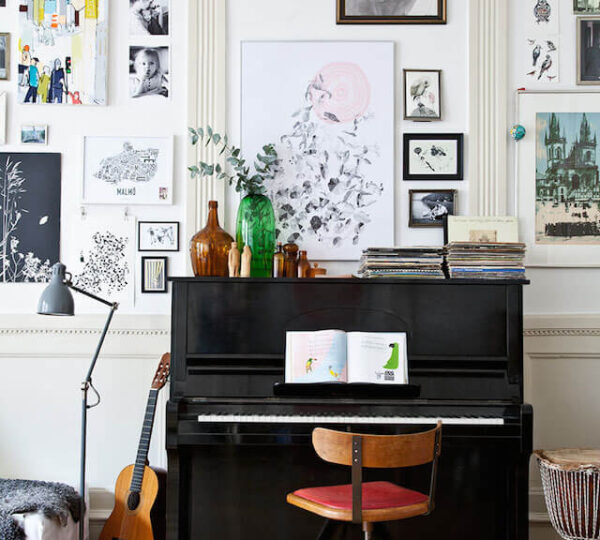 In the center of the room stood a beautiful upright piano. Dark wood, gleaming, clearly cared for. The walls were lined with shelves filled with sheet music, music theory books, and neatly labeled recordings stacked in careful rows.