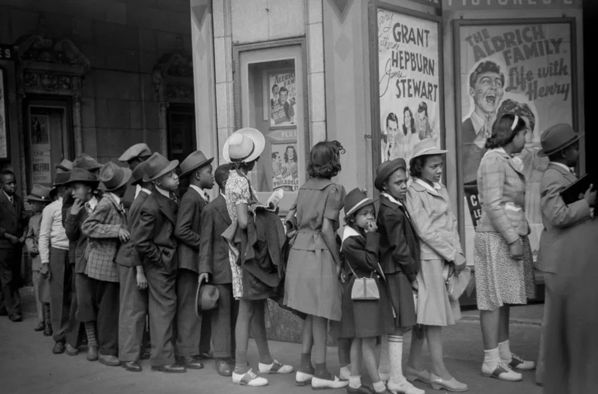In the picture, the children are waiting outside of a movie theater in Chicago. It’s a look into the past that we don’t often see, but despite the historical nature of the picture, the detail that you see on the far right of the image is too interesting to ignore.